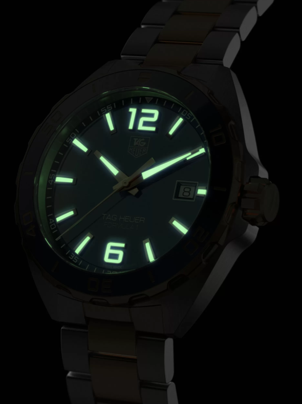 TAG Heuer Formula 1 WAZ1120.BB0879 erkek kol saati, zarif ve şık tasarımıyla göz alıcı bir modeldir. Paslanmaz çelik ve altın elementlerin birleşimiyle oluşturulan iki tonlu tasarım, saati modern ve sofistike bir hale getirir. Mavi bezel, altın renkte rakamlar ve işaretlerle süslenmiştir. Ayrıca, kadranın mavi tonları ve altın saat işaretçileri ile kolları, saatin lüks görünümünü pekiştirir. Saatin 3 pozisyonunda tarih göstergesi bulunur. Bilezik, alternatör olarak yerleştirilmiş paslanmaz çelik ve altın halkalarla dikkat çekici bir şıklık sunar. Kadranda "TAG HEUER FORMULA 1" yazısı ve TAG Heuer logosu yer alır. Bu saat, hem tarzınıza zarafet katacak hem de günlük kullanımda fonksiyonel bir aksesuar olarak vazgeçilmeziniz olacaktır.
